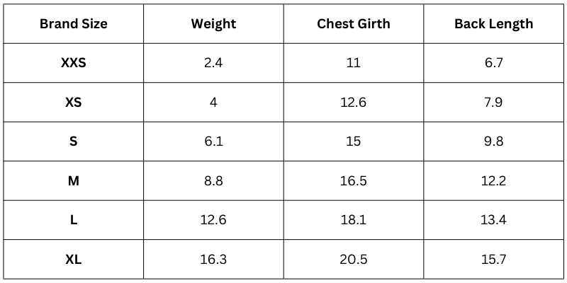 Measure based on back length and width before choosing a size. Avoid using standard clothing sizes or breed averages when making a selection.